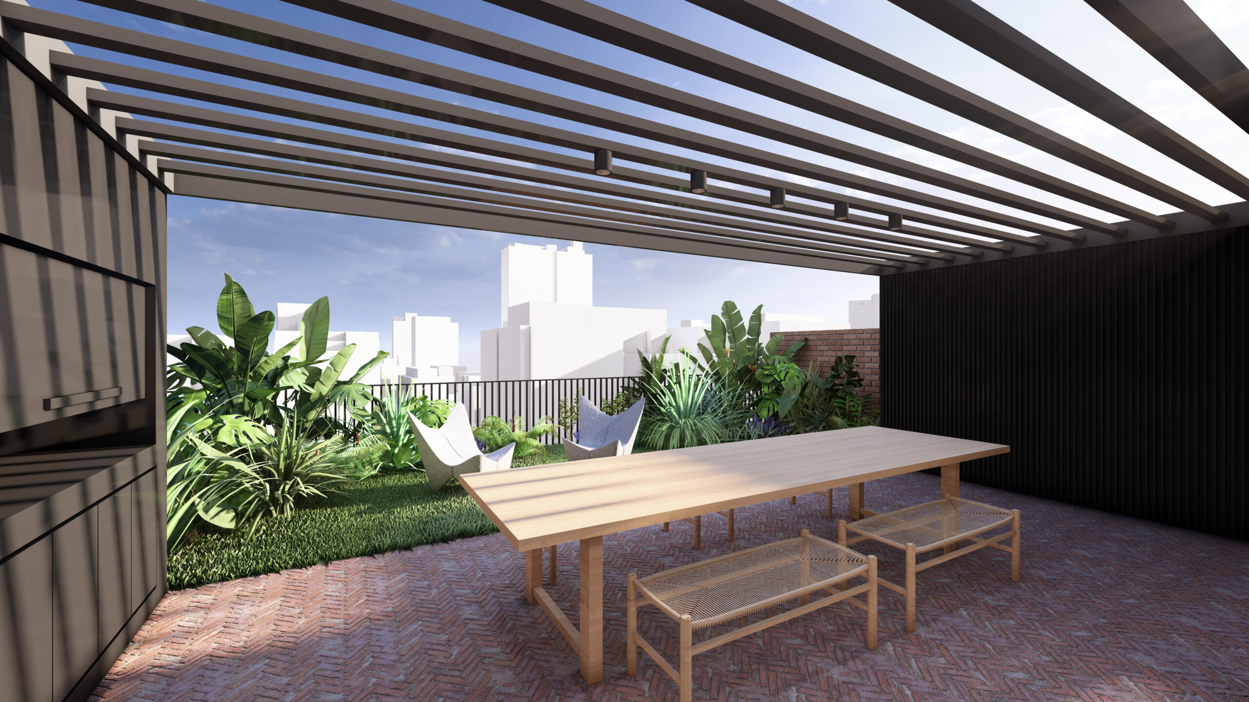 El edificio contará con 13 niveles y unidades de 2 y 3 ambientes , algunas con jardines propios y otras con balcones generosos, privilegiando siempre la conexión con los espacios verdes y la luz natural.